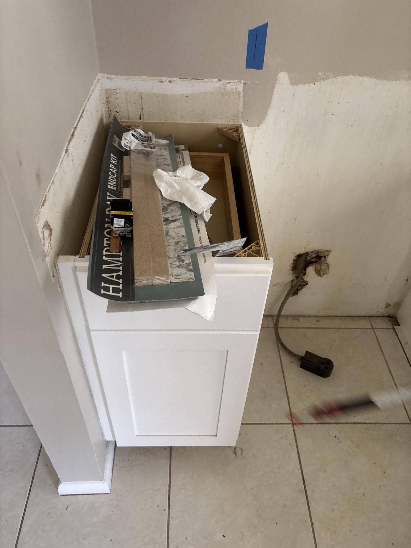 Teasdale Sarasota performed comprehensive mold damage remediation. This included thorough mold removal, cleaning, structural drying, and subsequent reconstruction work such as repairing and painting walls, as well as installing new cabinetry to fully restore the affected area.