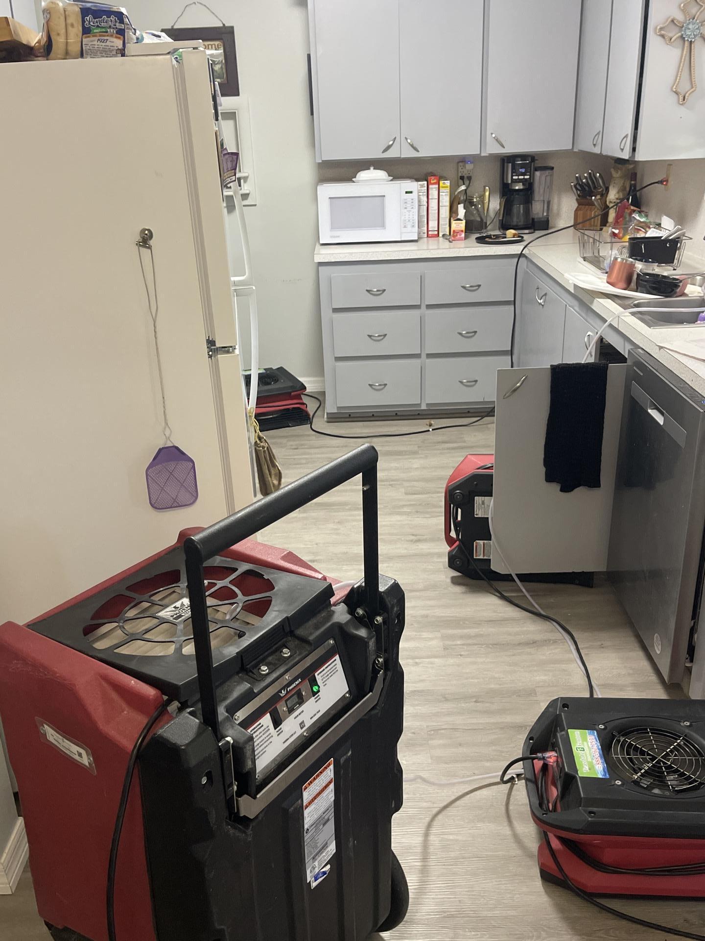 Our team provided professional water damage restoration services, including thermal imaging for leak detection and moisture mapping, followed by the deployment of specialized drying equipment such as industrial air movers and dehumidifiers to thoroughly dry the affected kitchen area and prevent further damage or mold growth.